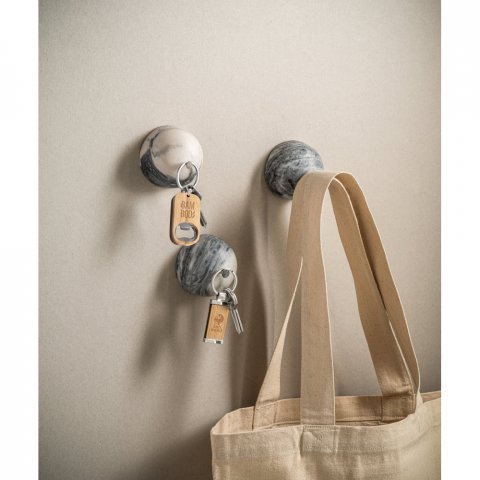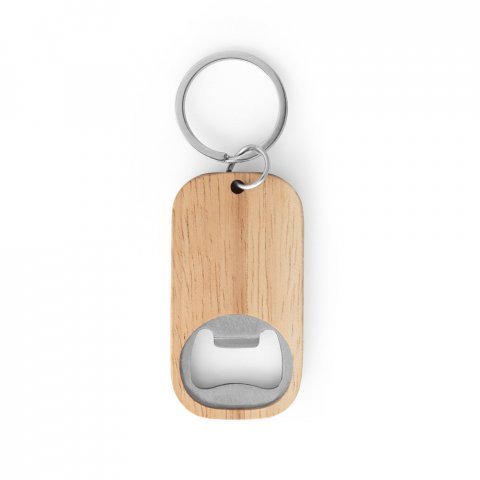 Chaveiro em aço inox e bambu com abridor de garrafas. A cor e o resultado da impressão nos materiais naturais pode variar entre produtos. 70 x 30 x 18 mm