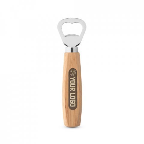 Abridor de garrafas em metal com cabo em madeira. A cor e o resultado da impressão nos materiais naturais pode variar entre produtos. 40 x 150 x 17 mm