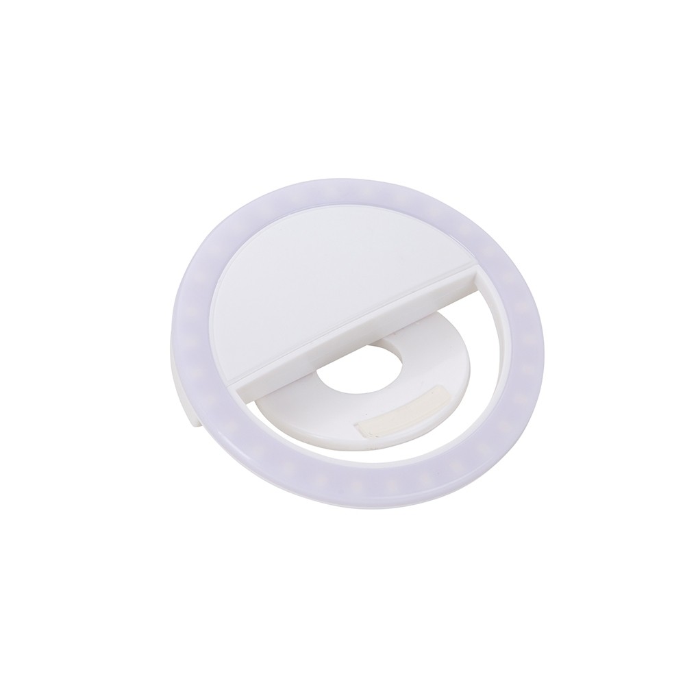 Melhore a qualidade das selfies e registre momentos únicos com mais luz e brilho! Nosso Anel de iluminação para celular, é um “Ring light” plástico, mais compacto, e no formato “presilha” para encaixe. Ainda possui três estágios de iluminação acionados pelo botão superior. Acompanha cabo USB para carregamento. Especificações: - Altura  8,5 cm - Largura  8,5 cm - Espessura  3 cm - Medidas aproximadas para gravação(CxL)  2,5 cm x 2,5 cm - Peso aproximado(g)  46