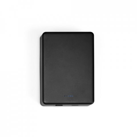 Bateria portátil com carregador por indução em ABS 100% reciclado, acabamento em mate e capacidade de 10.000 mAh Bateria portátil com carregador por indução (wireless) em ABS 100% reciclado e acabamento em mate. A bateria leve em lítio e com design slim, tem uma capacidade de 10.000 mAh e tempo de vida ≥ 300 ciclos. Esta bateria portátil torna-se muito prática para o dia a dia uma vez que permite, através do seu magnetismo, prender atrás dos smartphones ou capas com este sistema. Possui entrada/saída USB-C e potência máxima de 15W para carregamento rápido sem fios. Compatível com smartphones com tecnologia de carregamento sem fios. Incluso cabo USB-C para carregamento rápido. Fornecido em caixa presente de papel kraft reciclado. 90 x 65 x 19 mm | Caixa: 91 x 76 x 23 mm