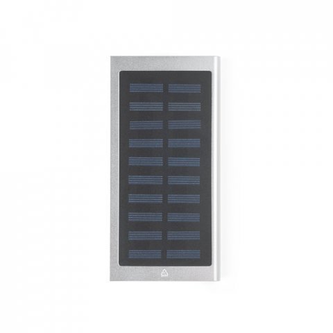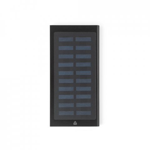 Bateria portátil em alumínio 100% reciclado com capacidade de 8 000 mAh Bateria portátil em alumínio 100% reciclado. Bateria em lítio, com painel solar monocristalino e lanterna. Tem capacidade de 8.000 mAh e tempo de vida superior a 500 ciclos. Possui uma porta de entrada USB-C e duas portas de saída USB-A. Incluso cabo USB-C para carregamento com cerca de 30 cm. Ideal para situações de emergência. Fornecido em caixa presente de papel kraft reciclado. 10 x 153 x 74 mm