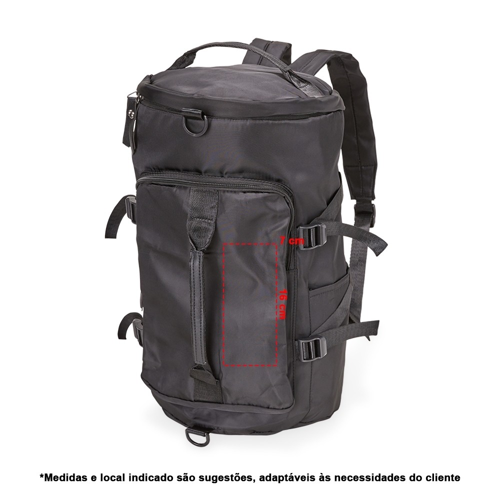 Bolsa esportiva de 30 litros em poliéster de impacto impermeável com três compartimentos, sendo um deles exclusivos para tênis. Compartimento principal com dois bolsos, sendo um deles com zíper exclusivo para itens molhados. Com bolsos laterais e duas alças de mãos, a bolsa contém alças de compensação, alça transversal removível e alças para as costas ocultas no compartimento inferior, podendo ser transportada como mochila.