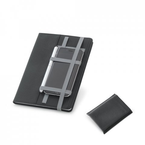 Caderno A6 com capa dura. Contém suporte para esferográfica, bolso interior e 80 folhas não pautadas em cor marfim. 97 x 145 mm