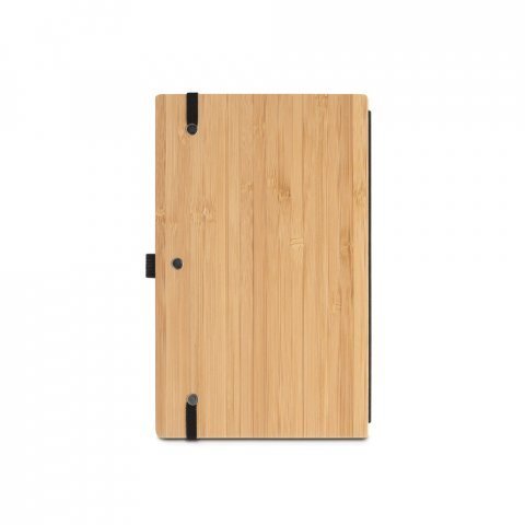 Caderno de bolso com capa e contracapa em placa de bambu e lombada em PET 100% reciclado, com 160 páginas lisas (S93583)