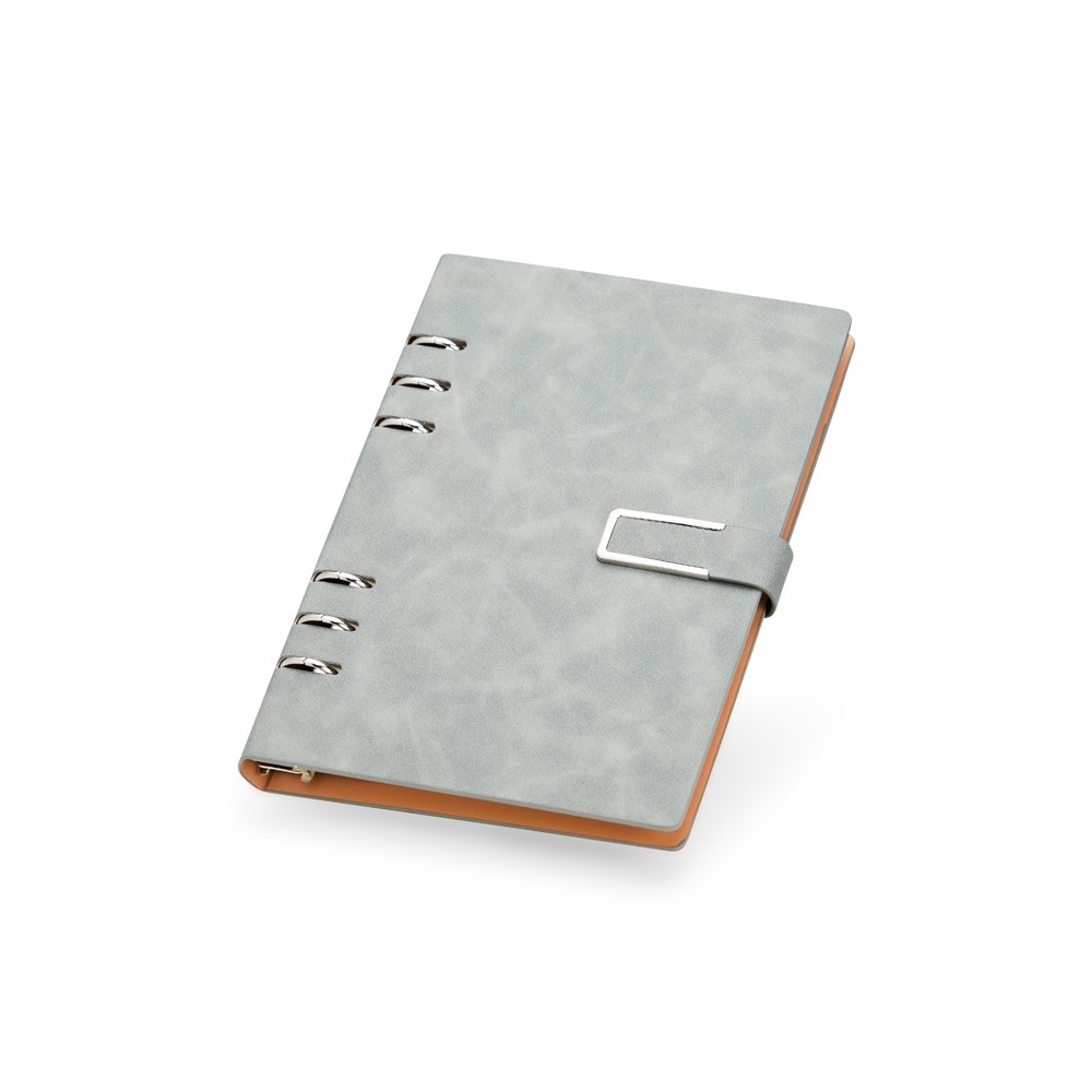 Organize todas as anotações de forma prática com o nosso caderno fichário em PU. Com um design super elegante, ele tem capa dura no formato A5 e um fechamento de fivela imantado que protege as 119 folhas em papel marfim. Os seis anéis permitem retirar e reorganizar as folhas sempre que precisarem, deixando tudo do seu jeito. E para completar, a primeira folha traz um espaço especial para dados pessoais. Esse caderno fichário é a escolha perfeita para manter tudo organizado e com muita sofisticação. Especificações: - Altura  22,9 cm - Largura  16,5 cm - Espessura  2,7 cm - Medidas aproximadas para gravação(CxL)  8 cm x 11 cm - Peso aproximado(g)  442