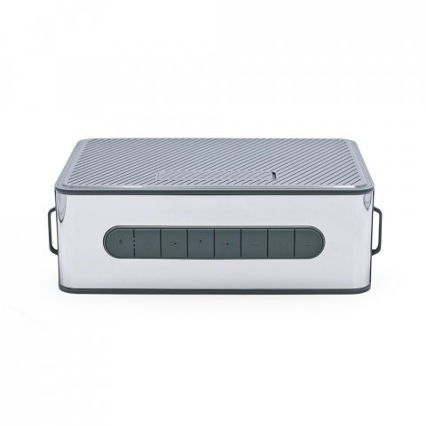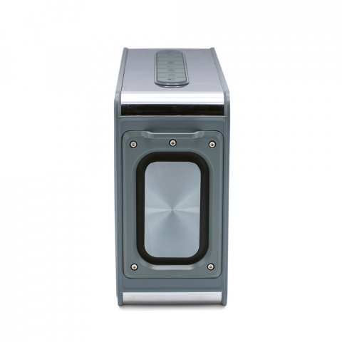 Caixa de som em ABS 100% reciclado com microfone incorporado 5.200 mAh Caixa de som em ABS 100% reciclado com 80W de potência. A capacidade da bateria é de 5.200 mAh, o que permite uma autonomia aproximada de 7h. Tem equalizador com 3 modos, transmissão BT 5.3, entrada e saída AUX e permite ligar microfone externo ou guitarra diretamente. Possibilidade de emparelhar duas caixas de som Jouncer para efeito stereo. Incluso carregador e uma alça para transporte da caixa de som ao ombro. Fornecido em caixa presente de papel kraft reciclado. A grelha é fornecida solta para pedidos não personalizados. 293 x 198 x 105 mm | Caixa: 330 x 309 x 147 mm