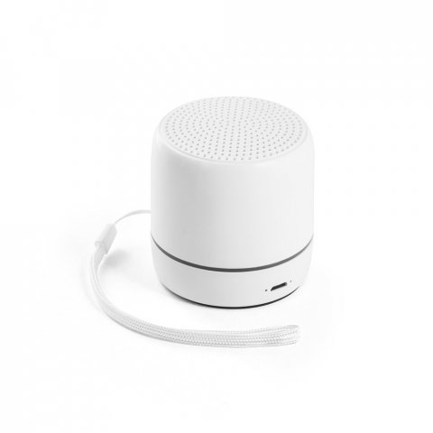 Caixa de som portátil em ABS 100% reciclado com faixa LED exterior. Transmissão BT v5.0, potência de 3W (4Ω) e autonomia aproximada de 4h. Permite a função para atender chamadas e conectar à playlist do dispositivo móvel. Incluso cabo de carregamento USB. Fornecido em caixa presente de papel kraft reciclado. ø55 x 63 mm | Caixa: 62 x 62 x 75 mm