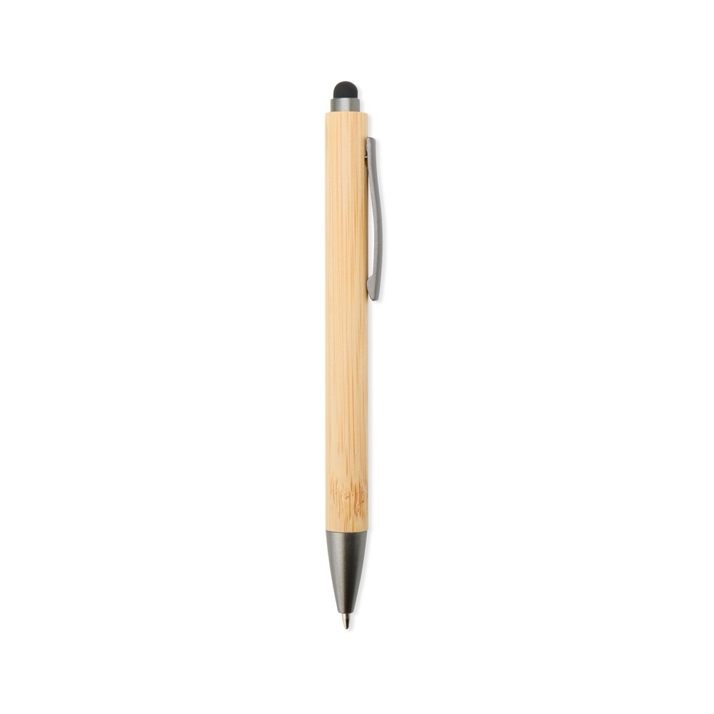 Boa escrita começa com escolhas conscientes. A nossa caneta ecológica touch de bambu, é a opção ideal para dias intensos de anotações. Com detalhes plásticos e ponta touch, é possível utilizá-la em dispositivos eletrônicos sem tocar diretamente na tela, evitando manchas indesejadas. Essa caneta é a combinação perfeita de sustentabilidade e praticidade. Especificações: - Altura  14 cm - Largura  1,4 cm - Medidas aproximadas para gravação(CxL)  4 cm x 0,5 cm - Peso aproximado(g)  10