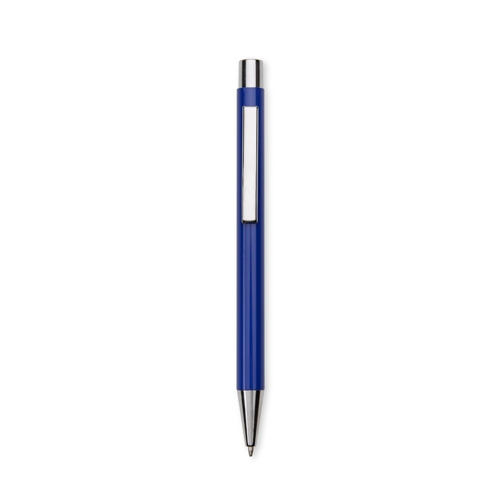 Caneta metálica com acionamento por clique e carga esferográfica azul de 1,0mm.