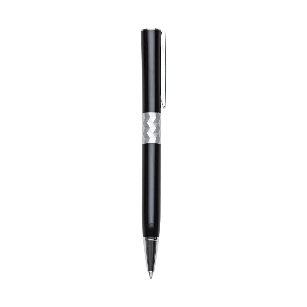 Caneta metálica com carga esferográfica azul e acionamento por rotação. OBS.: PEDIDO APENAS MÚLTIPLO DE 50 PEÇAS!