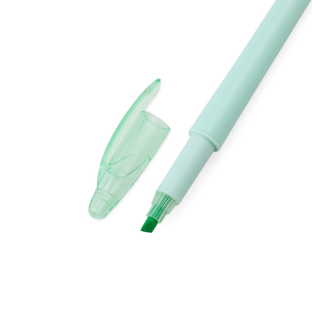 Caneta plástica com marca texto com tampa protetora para o marca texto, carga esferográfica azul 1.0mm e acionamento por rotação. Especificações: - Largura  1,4 cm - Comprimento  14,6 cm - Medidas aproximadas para gravação(CxL)  0,6 cm x 3,4 cm - Peso aproximado(g)  10
