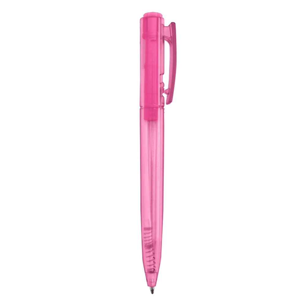 Caneta plástica com carga esferográfica azul 1.0 mm e acionamento por clique.