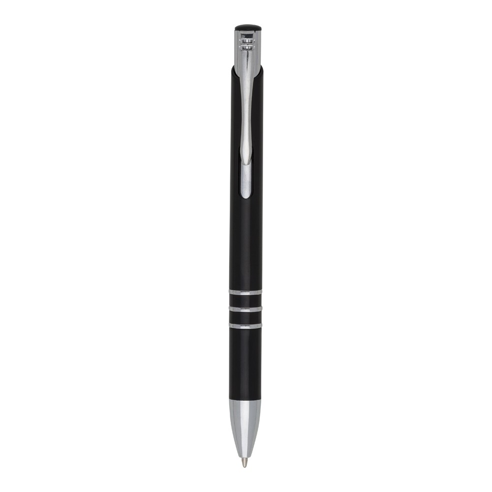 Caneta plástica com carga esferográfica azul 1.0 mm e acionamento por clique. Especificações: - Altura  13,9 cm - Largura  1,4 cm - Medidas aproximadas para gravação(CxL)  4 cm x 0,8 cm - Peso aproximado(g)  9
