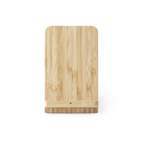 Carregador por indução (wireless) super-rápido em bambu com suporte para esferográficas. Possui uma potência de carregamento sem fios máxima de 15W. Incluso cabo de carregamento USB-C de 1m. Compatível com dispositivos móveis com tecnologia de carregamento sem fios. Fornecido em caixa presente de papel kraft reciclado. A cor e o resultado da impressão nos materiais naturais pode variar entre produtos. 77 x 71 x 118 mm
