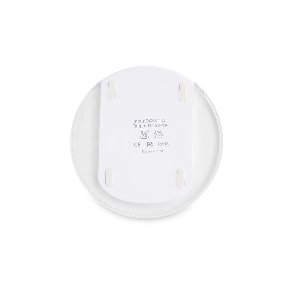 Carregador via indução formato disco com indicador de funcionamento em led, feito em plástico ABS. Acompanha cabo USB. OBS.: O CARREGADOR APENAS TRANSFERE CARGA, ELE NÃO POSSUI BATERIA PARA ARMAZENAMENTO (NÃO É UM POWER BANK).