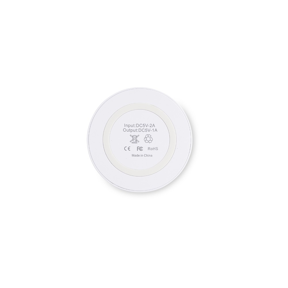 Carregador via indução formato disco com indicador de funcionamento em led, feito em plástico ABS. Acompanha cabo USB. OBS.: O CARREGADOR APENAS TRANSFERE CARGA, ELE NÃO POSSUI BATERIA PARA ARMAZENAMENTO (NÃO É UM POWER BANK).