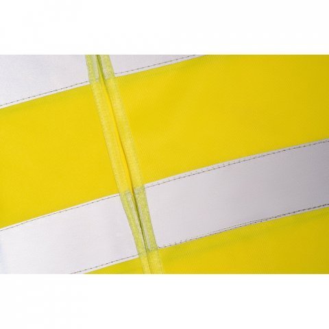Colete de alta visibilidade em poliéster, com certificado pela norma EN ISO 20471 classe 2. Colete refletivo com 2 bandas refletoras horizontais e abertura frontal com fecho aderente. Tamanho único: 670 x 700 mm