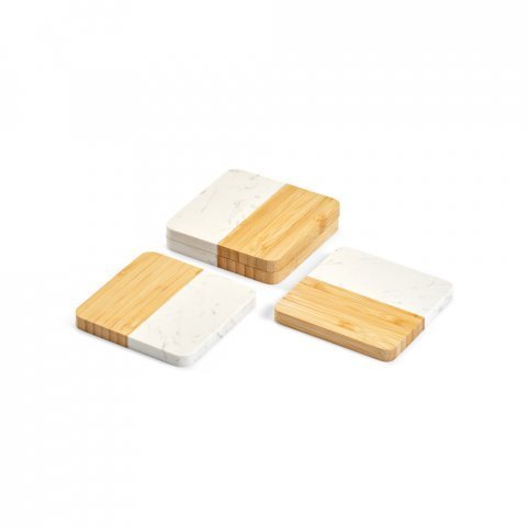 Conjunto de 4 porta copos em mármore e bambu (S94338)