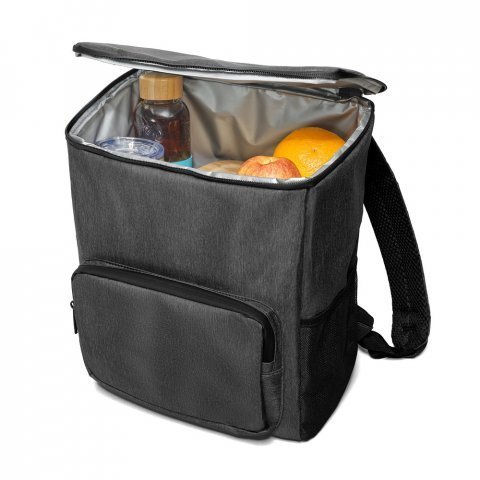 Mochila com isolamento térmico em Nylon 2Tone com interior forrado em PEVA 14 L Mochila com isolamento térmico em Nylon 2Tone com interior forrado em PEVA para facilitar a higienização e conservação. Contém 1 compartimento principal, 1 bolso frontal com fecho e 1 bolso lateral em tela mesh. Possui um bolso com fecho principal duplo. As alças e as costas são almofadadas. Capacidade até 14 L. Certificação EU Food Grade. 290 x 380 x 160 mm