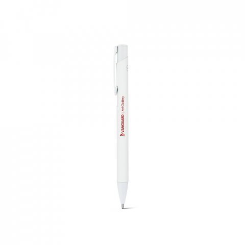 Esferográfica em alumínio 100% reciclado, com acabamento em borracha. Escrita em azul até 1,5 km. ø10 x 136 mm