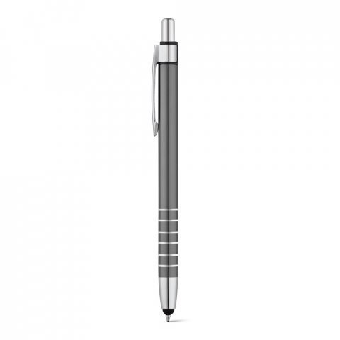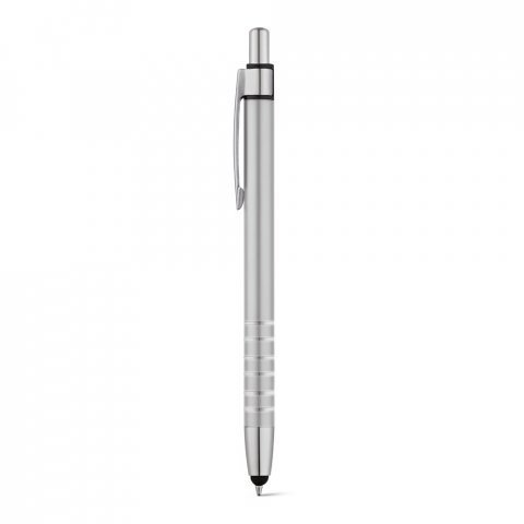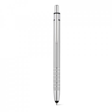 Esferográfica em alumínio com ponteira touch e clipe de metal. Escrita em azul até 1,5 km. ø9 x 138 mm