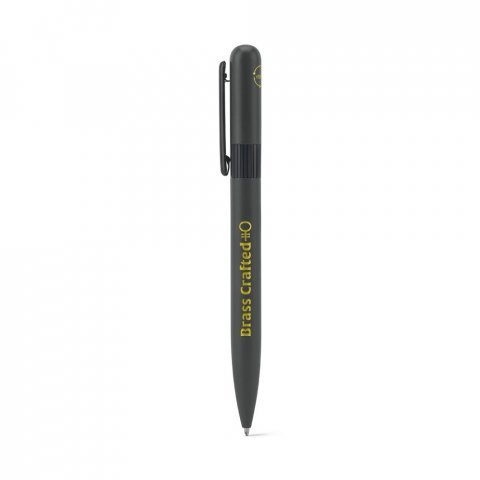 Esferográfica em metal 60% reciclado com design arredondado e escrita em preto (S51974)