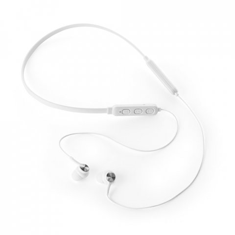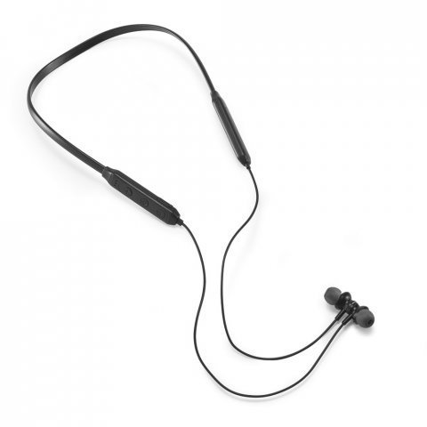 Fone de ouvido em PC. Transmissão sem fios BT v5.0 com banda para pescoço com autonomia aproximada de 7 horas. Função para atender chamadas, controle de volume e conexão à playlist do dispositivo móvel. Incluso cabo USB / micro USB para carregar. Fornecido em bolsa em non-woven. 190 x 200 mm