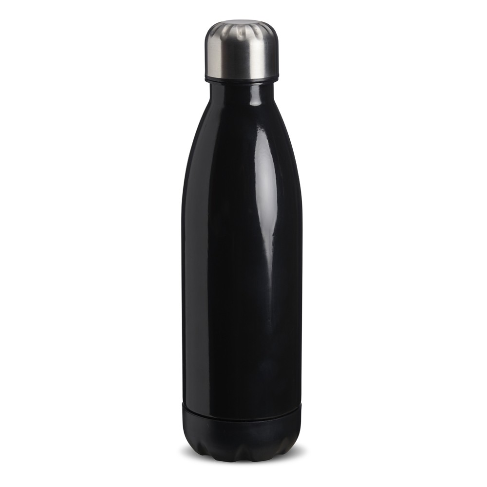 Garrafa de plástico com capacidade para 700ml, possui uma tampa de alumínio com rosca.