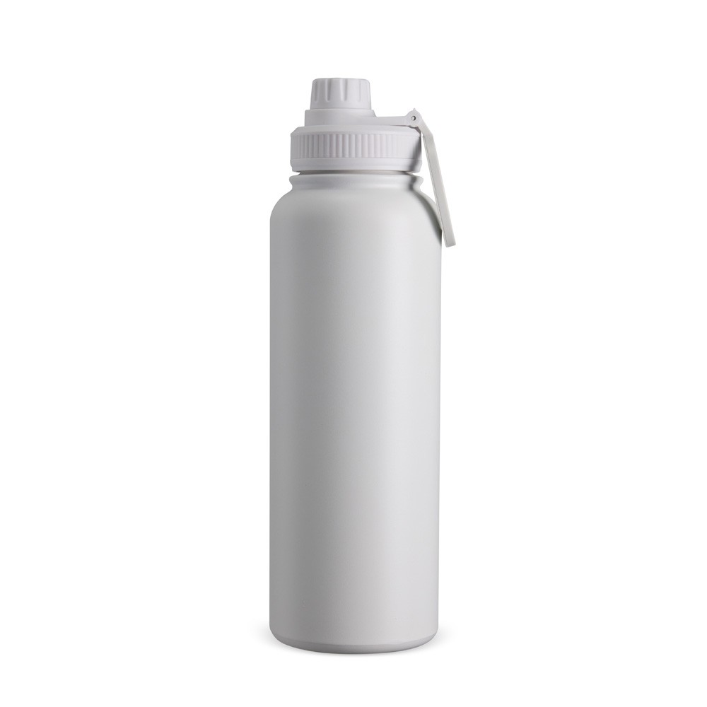 Garrafa térmica em inox com pintura eletrostática e capacidade máxima de 1,2 litro. Possui estrutura de parede dupla e isolamento a vácuo que permite a conservação da temperatura de líquidos por mais tempo. Dispõe ainda de tampa rosqueável em plástico com alça circular magnética compatível com smartphones da linha iPhone da Apple. Especificações: - Altura  30 cm - Largura  9 cm - Circunferência  28,5 cm - Medidas aproximadas para gravação(CxL)  15 cm x 10 cm - Tamanho total aproximado(CxL)  Diâmetro bocal 5,5 cm - Peso aproximado(g)  505