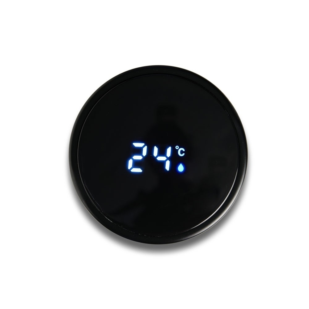 Garrafa térmica de parede dupla em inox, capacidade de 400ml. Tampa com display touch screen de temperatura em led, acompanha infusor de bebidas.