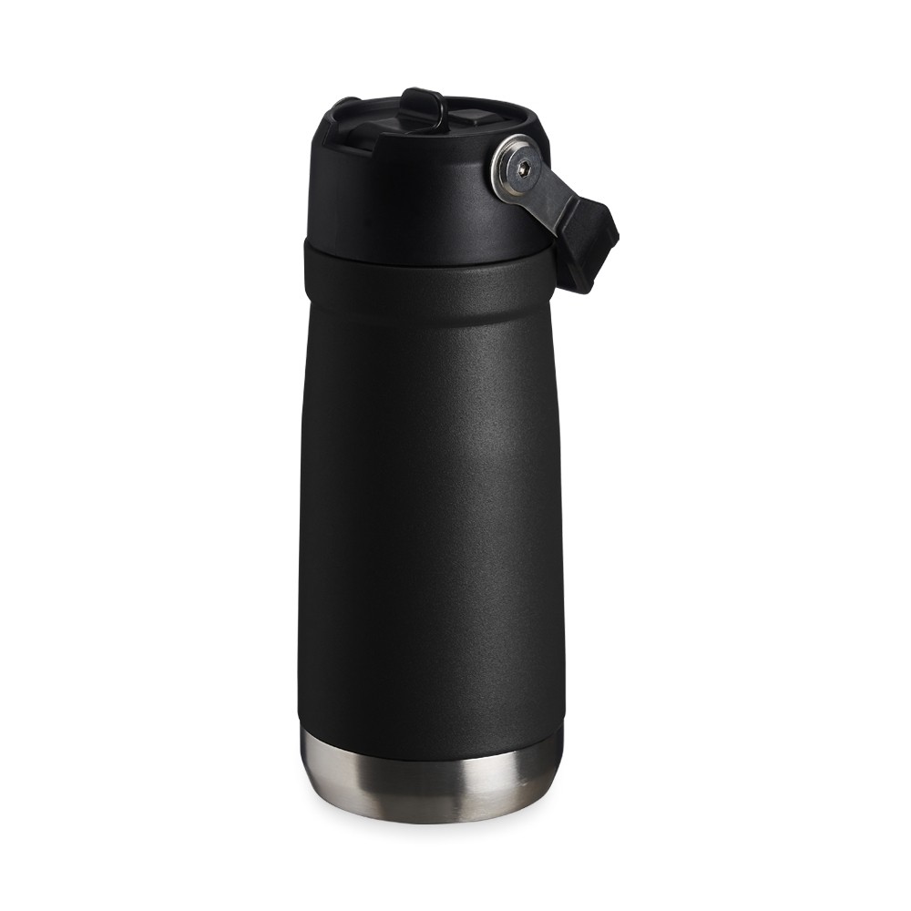 Garrafa térmica em inox de parede dupla, capacidade de 550ml. Tampa com alça de transporte, bico flip e canudo interno. Especificações: - Altura  21,5 cm - Largura  8 cm - Circunferência  25,4 cm - Medidas aproximadas para gravação(CxL)  12 cm x 5 cm - Peso aproximado(g)  402