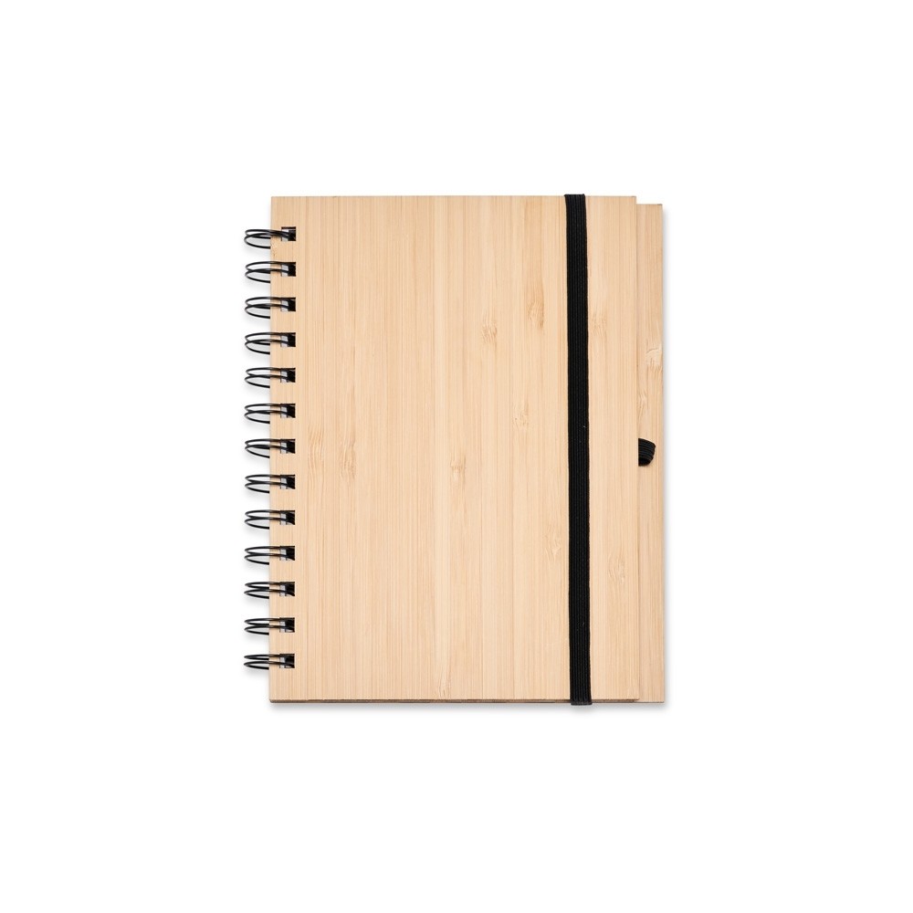 Kit composto por 3 peças: sendo uma caderneta de bambu com capa dura, contendo aproximadamente 70 folhas brancas pautadas, uma caneta de bambu com clipe metálico e um chaveiro de bambu com detalhe em metal. Item perfeito para quem busca elegância, sustentabilidade e o toque natural que só o bambu proporciona.