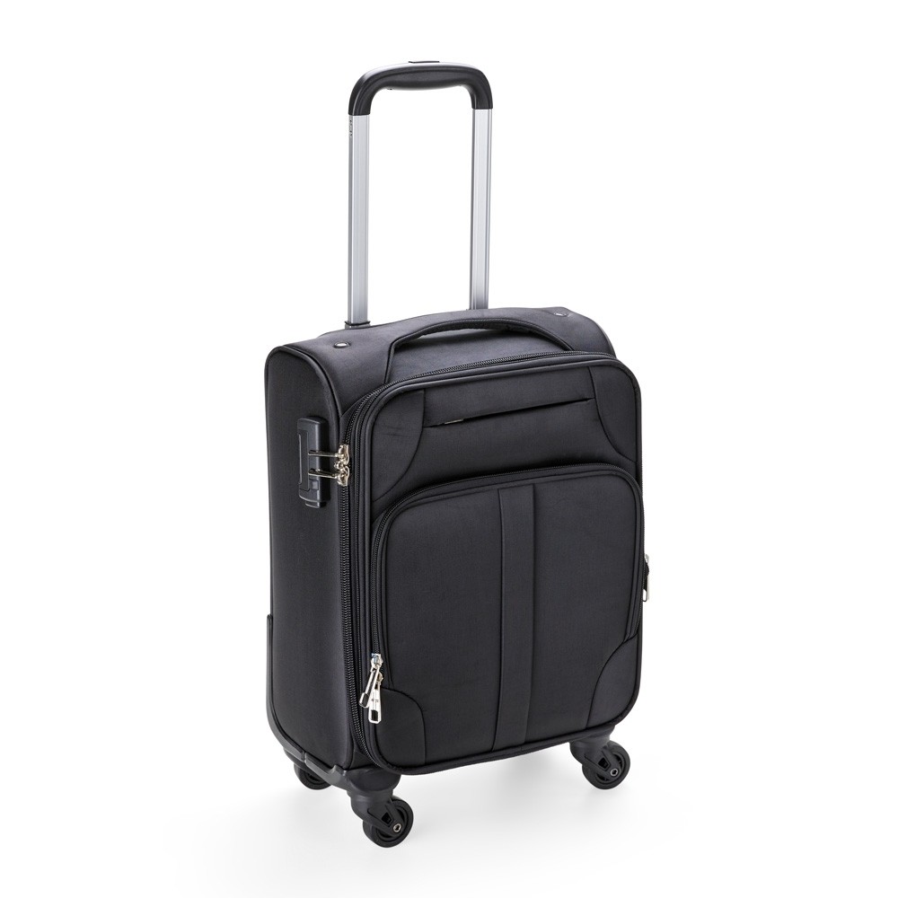 Mala de bordo 30 litros com padrão ANAC (Agência Nacional de Aviação Civil), confeccionada em poliéster de alta qualidade, com cadeado numérico TSA. Possui etiquetas de identificação embutidas na mala, sendo uma integrada ao cadeado e outra na parte de trás da mala, acoplada por estojo em couro sintético. Três compartimentos, bolso telado, cinta compressora para roupas, alça de mão em poliéster, puxador retrátil com regulagem de tamanho, zíper expansível e quatro rodinhas 360º. Especificações: - Altura  37 cm - Largura  27 cm - Profundidade  19 cm - Comprimento  puxador 48,6 cm - Medidas aproximadas para gravação(CxL)  4 cm x 18 cm - Tamanho total aproximado(CxL)  extensor 4,5 cm - Peso aproximado(g)  2561