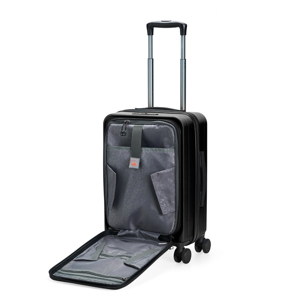 Mala de bordo 32 litros, resistente e funcional! Produzida em plástico ABS, conta com cadeado numérico TSA embutido para mais segurança. Seu design inteligente traz abertura frontal com bolso para notebook de até 15.6, além de divisórias internas com zíperes e cinta compressora para roupas. Precisa de mais espaço? O zíper externo expansível se encarrega de ampliar a capacidade da mala. Para facilitar o transporte, possui puxador retrátil de 3 estágios, duas alças de mão, apoios e ganchos laterais e rodinhas 360º, proporcionando mobilidade total. Acompanha plaquinha metálica grafite personalizável.