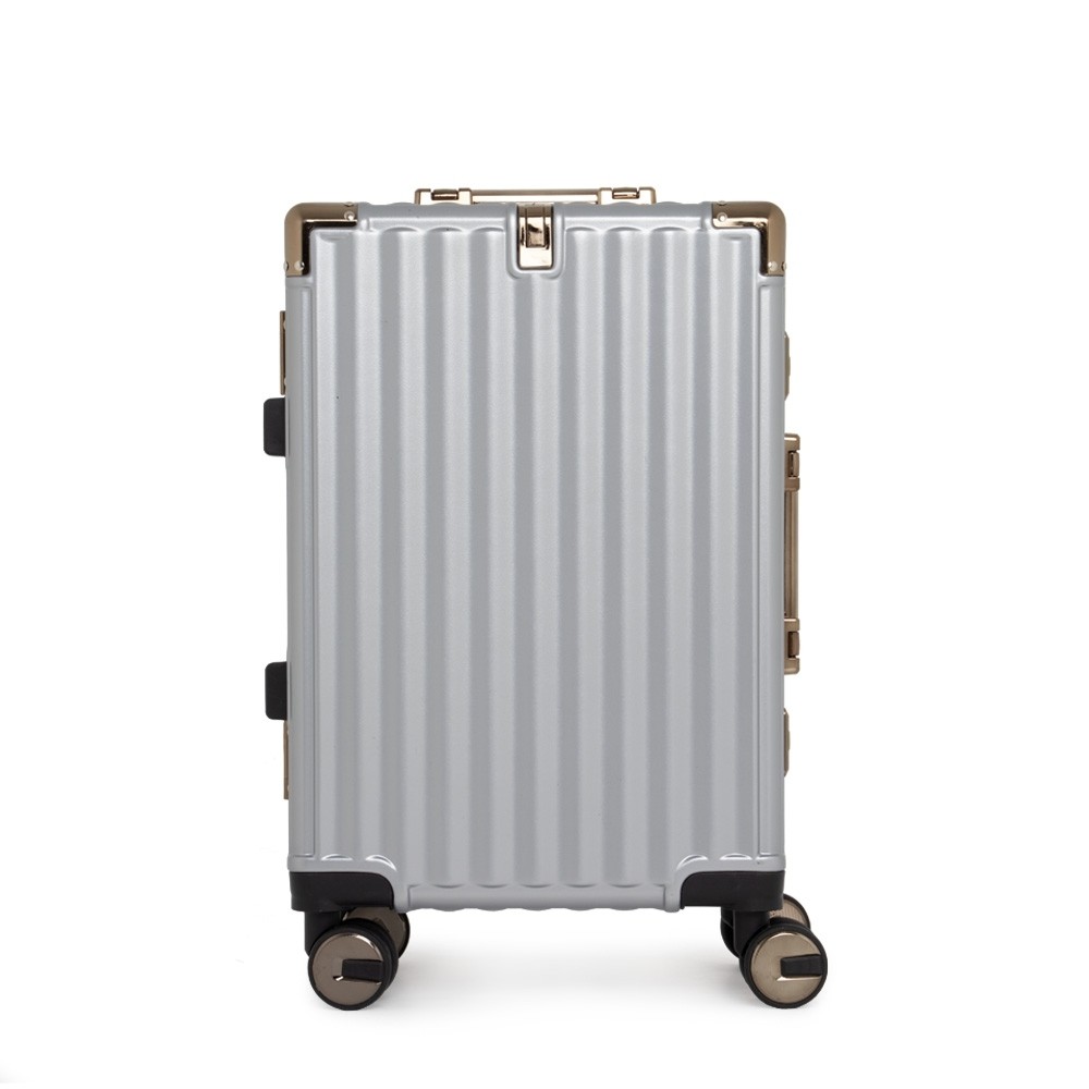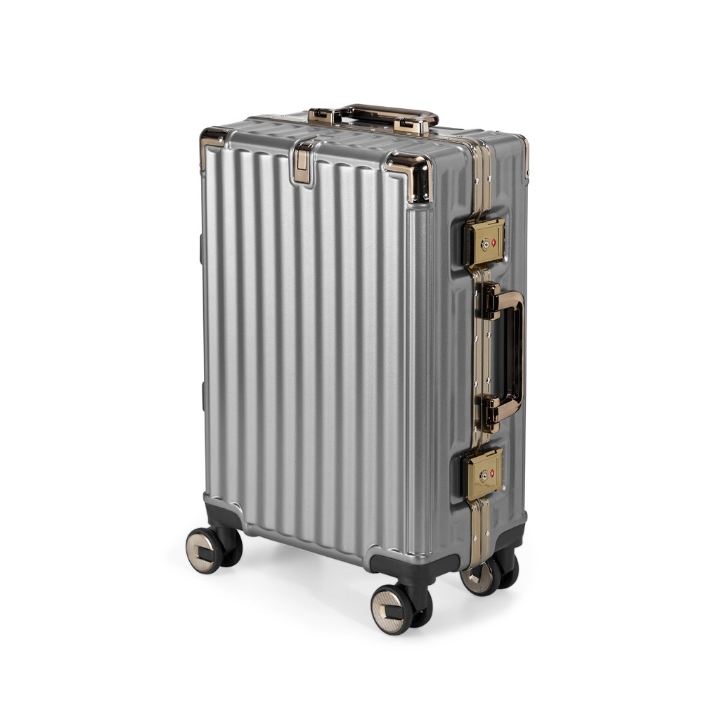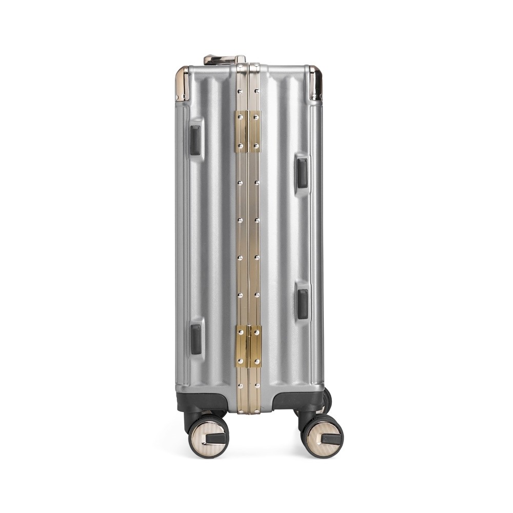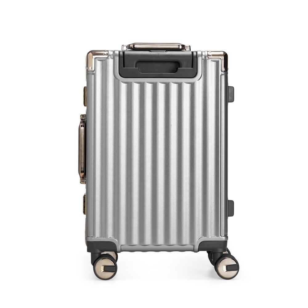 Mala de viagem 30 litros feita em plástico com acabamento em alumínio, contém cadeado numérico TSA. Compartimentos internos com bolso telado, bolso plástico para itens molhados e cinta compressora para roupas. A mala possui duas alças de mãos, puxador retrátil com regulagem de tamanho, suporte porta bolsa, quatro rodinhas 360º e apoios laterais. Especificações: - Altura  57 c/roda cm - Largura  36,5 cm - Profundidade  21,9 cm - Medidas aproximadas para gravação(CxL)  38 cm x 28 cm - Peso aproximado(g)  3084