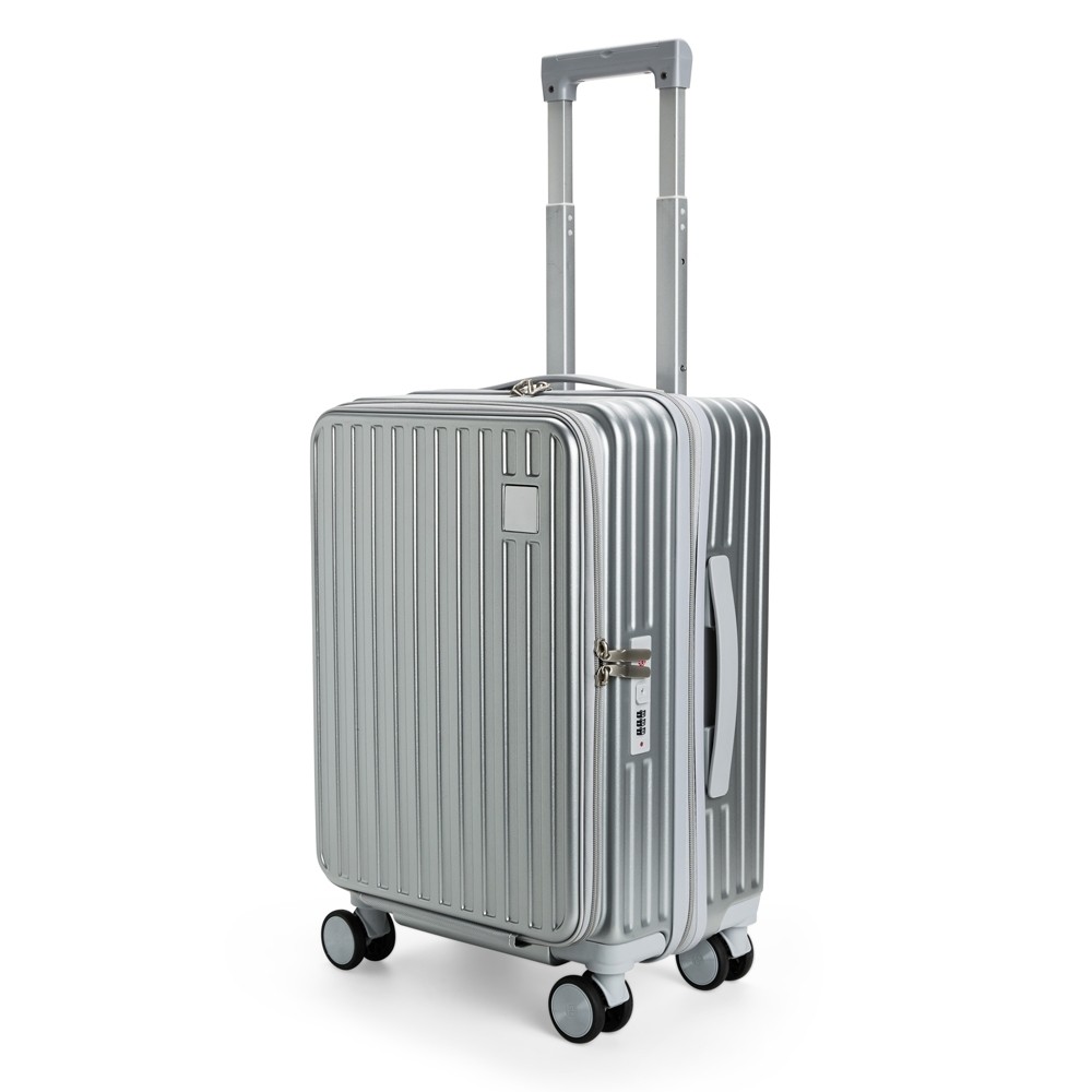 Mala de viagem feita em policarbonato (PC) com capacidade de até 32 litros. Apresenta compartimentos internos de difernetes tamanhos, incluindo um bolso telado e outro em plástico para itens molhados, além de cinta compressora no lado oposto. Possui alça superior, alça lateral, puxador retrátil ajustável, quatro rodinhas com rotação de 360 graus, adaptador para cabo USB, suporte para copo ou garrafa, quatro apoios laterais e cadeado numérico TSA. Dispõe ainda de compartimento frontal com três bolsos em tamanhos variados. Especificações: - Altura  55,5 cm - Largura  35,5 cm - Profundidade  26,5 cm - Comprimento  Alça 45,5 cm - Medidas aproximadas para gravação(CxL)  3,5 cm x 3,5 cm - Peso aproximado(g)  3241