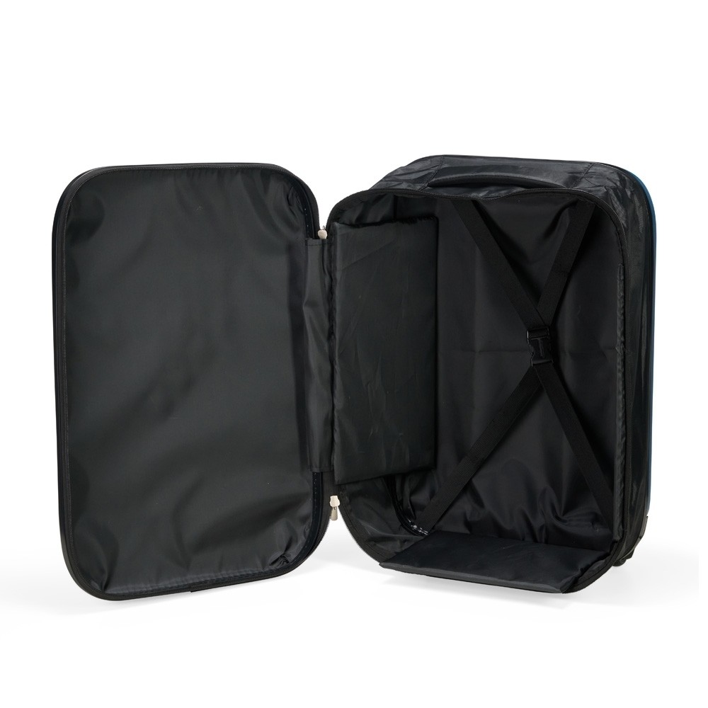 Mala de viagem expansível em ABS com bordas em poliéster que, ao ser expandida, comporta a capacidade máxima de 40 litros. Conta com forro interno em poliéster 210D, cinta compressora para roupas e placas rígidas em PVC que mantêm a armação da mala quando desdobrada. Dispõe ainda de duas rodinhas e alça retrátil em alumínio com puxador em plástico. Acompanha uma faixa em poliéster com seção elástica para envolver a mala dobrada. Especificações: - Altura  55 cm - Largura  36,5 cm - Profundidade  18 cm - Medidas aproximadas para gravação(CxL)  16 cm x 32 cm - Tamanho total aproximado(CxL)  Profundidade expandida 20,5cm - Peso aproximado(g)  2792