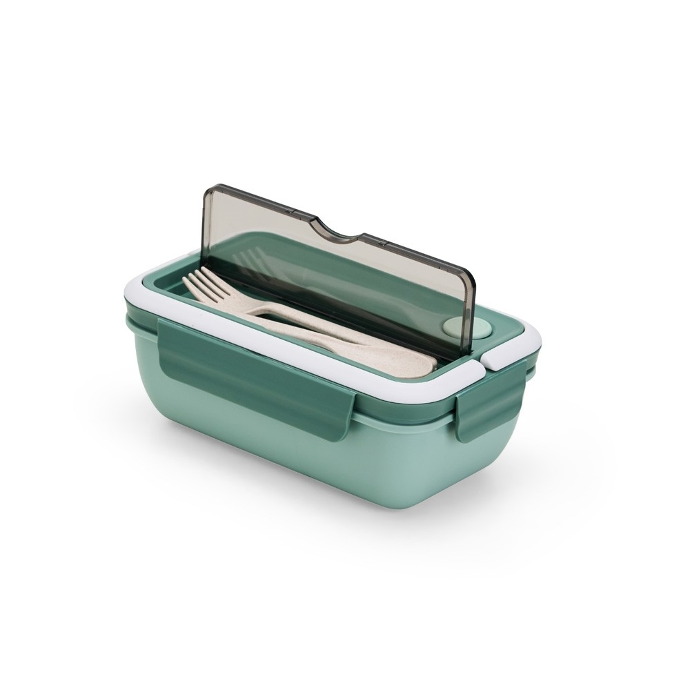 Marmita hermética de 1 litro com divisórias e 3 talheres. Feita em PP atóxico e livre de BPA, é completamente segura para armazenar alimentos. A tampa possui travas de segurança, supervedação, silicone com respiro e alças que facilitam o transporte. Os talheres podem ser guardados em um compartimento separado com tampa transparente, garantindo praticidade durante as refeições. Além disso, as duas divisórias internas mantêm os alimentos separados, preservando o sabor de cada um. Uma escolha inteligente para uma vida prática e saudável.