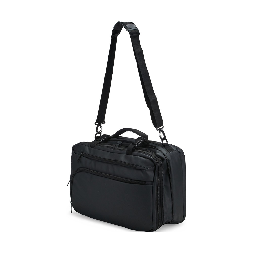 Mochila em nylon com uma camada de PU impermeável com capacidade máxima de 28 litros. Possui um compartimento interno a com sistema de vedação vácuo para guardar roupas e outros objetos (bomba compressora não incluído) e duas divisórias em poliuretano termoplástico de tamanhos diferentes, além de bolsos frontais, um lateral em tela e outro traseiro com divisória para notebook de até 15,6 polegadas. Dispõe ainda de alças acolchoadas em espuma respirável, uma alça lateral para transporte horizontal e outra para ombro ajustável em nylon.