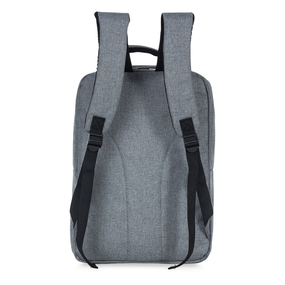 Mochila de nylon com compartimento para notebook. Dois compartimentos grandes, sendo o primeiro com bolso interno para notebook e compartimento frontal com zíper escondido. Zíperes preto com pegadores plásticos, alça superior, alças para costa ajustáveis revestidas com espuma para maior conforto.