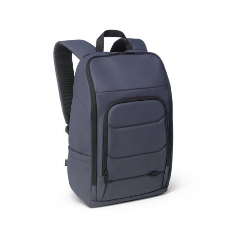 Mochila para notebook em 600D, poliéster reciclado, de alta densidade, com revestimento resistente à água 16" 19 L Mochila para notebook em poliéster reciclado 600D de alta densidade, com revestimento resistente à água, e forro em poliéster reciclado 210D. O seu acabamento confere-lhe um soft touch, tornando a sua utilização mais confortável. Possui um compartimento principal com diversos bolsos e 2 divisórias almofadadas para notebook até 16" e tablet até 10.1", bolso frontal com zíper e divisórias interiores e bolso lateral ideal para transportar a sua squeeze. A parte posterior tem um acolchoamento extra e incorpora uma alça para trolley em caso de necessidade. Faixa refletora na parte da frente da mochila. Capacidade até 19 L. 300 x 460 x 160 mm