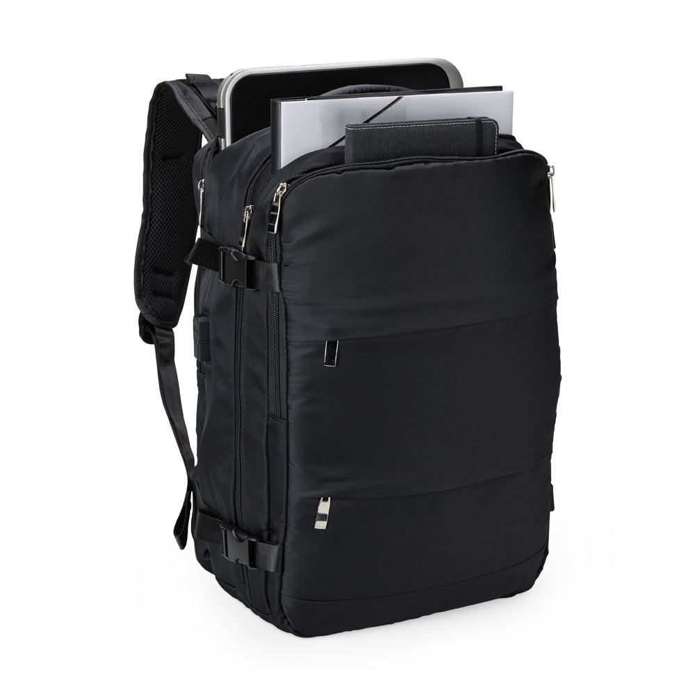 Versátil e completa, essa mochila de 35 litros é a escolha ideal para viagens, transporte de materiais de trabalho, estudo e todos os momentos do dia a dia! Com compartimentos inteligentes, ela oferece mais organização e segurança, além de resistência à água. Produzida em poliéster, são seis compartimentos, incluindo um para itens molhados, um exclusivo para tênis, um espaço amplo para roupas e documentos com entrada USB, um compartimento para notebook de até 15,6” e um bolso antifurto para maior proteção. Prática, conta ainda com fivelas ajustáveis, alças reguláveis que distribuem o peso de forma equilibrada, bolso lateral para garrafa, costas acolchoadas e engate para mala de viagem. Funcionalidade e conforto para qualquer ocasião!