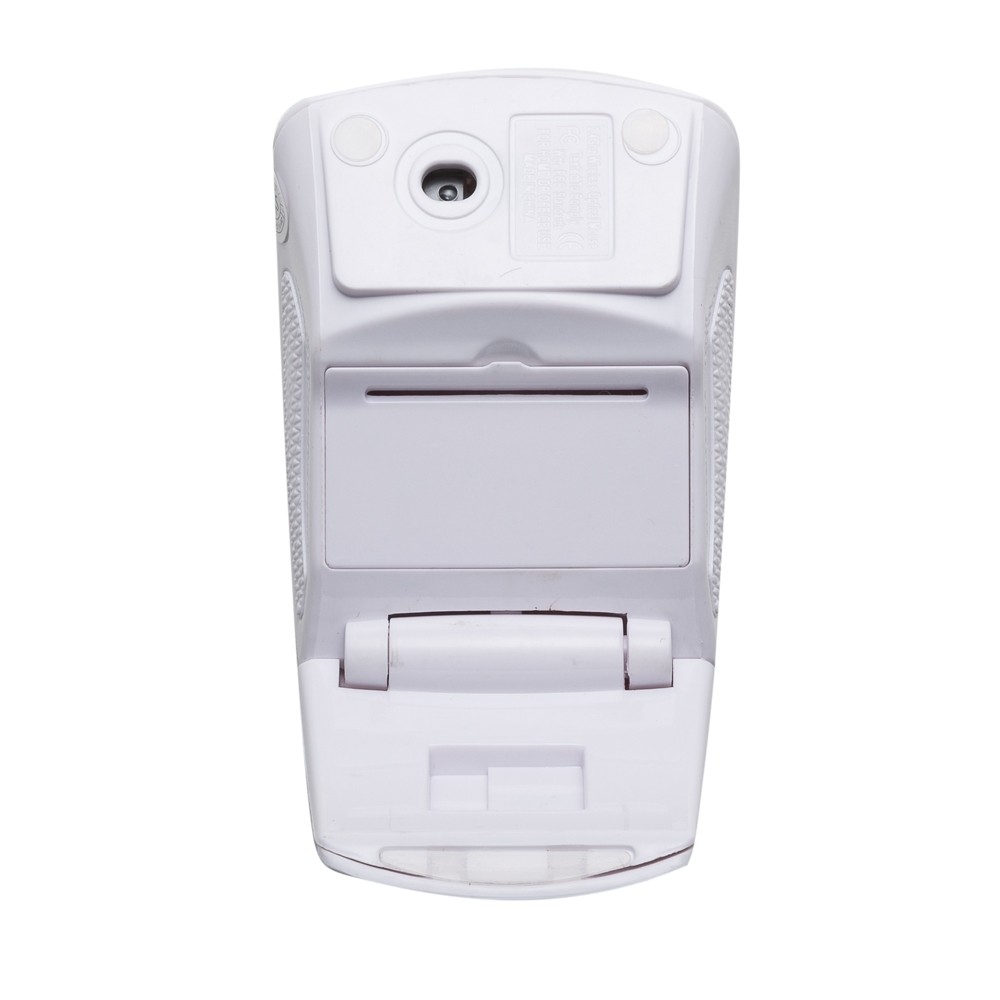 Mouse óptico de tecnologia wireless e retrátil. Mouse anatômico de material plástico resistente, possui rolamento plástico translúcido, laterais texturizadas, parte traseira dobrável, luz inferior óptica vermelha, receptor Nano USB 2.4 GHZ. Funcionamento através de 2 pilhas AAA(não acompanha).