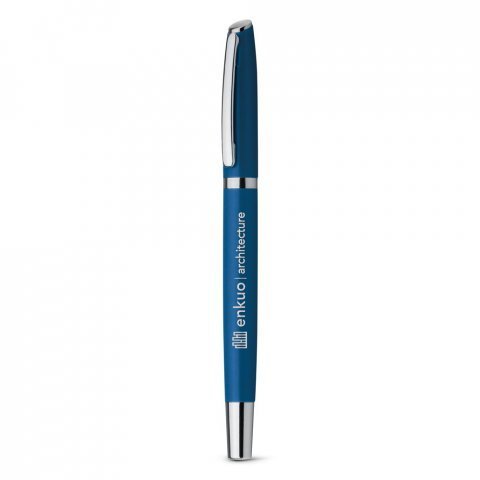 Roller em alumínio com clipe de metal. Escrita em azul. ø11 x 140 mm