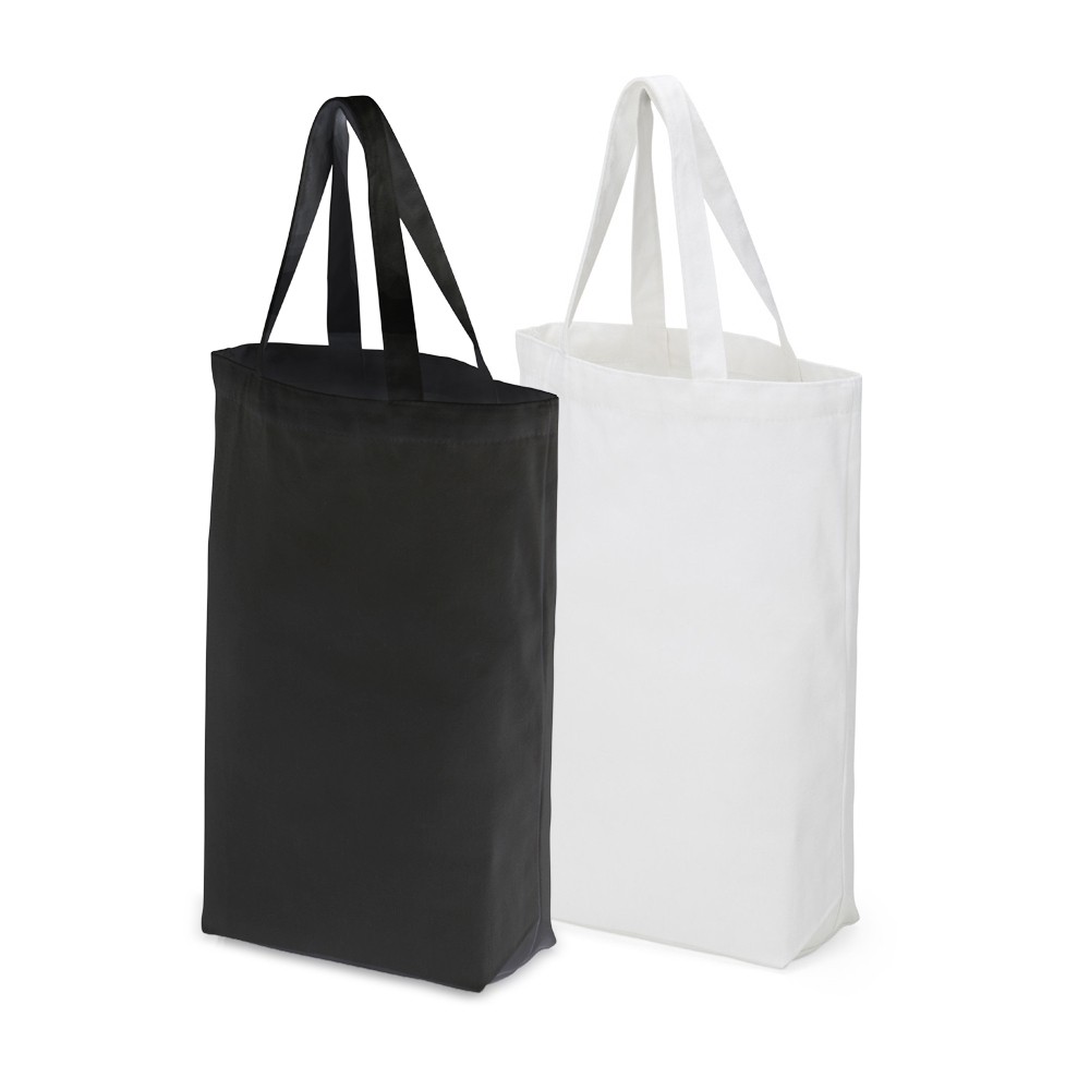 Sacola feita em algodão 280g/m² com duas alças costuradas na parte interna. Especificações: - Altura  40,5 cm - Largura  32 cm - Profundidade  9,5 cm - Comprimento  Alça 22,3 cm - Medidas aproximadas para gravação(CxL)  35 cm x 27 cm - Peso aproximado(g)  117
