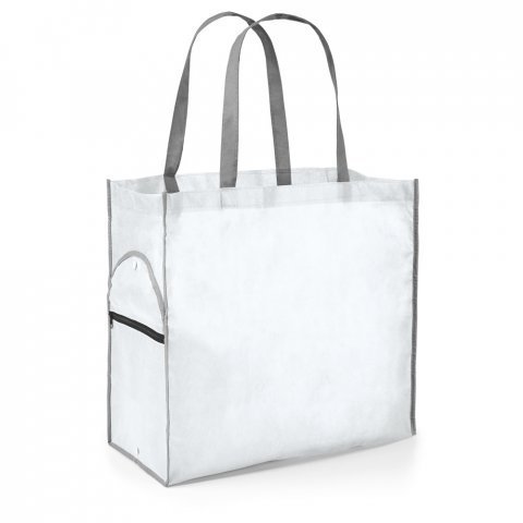 Sacola dobrável em non-woven (80 g/m²) com alças Sacola dobrável em non-woven (80 g/m²) com alças de 65 cm. Fornecida desdobrada. Dobrado: 200 x 120 mm | Aberto: 450 x 400 x 200 mm