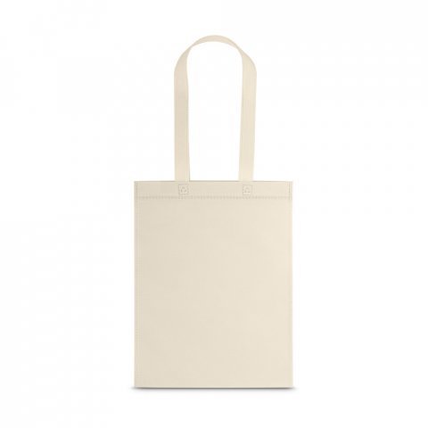 Sacola em non-woven (80 g/m²) Sacola em non-woven (80 g/m²) termo-selado com alças de 55 cm. 270 x 350 mm