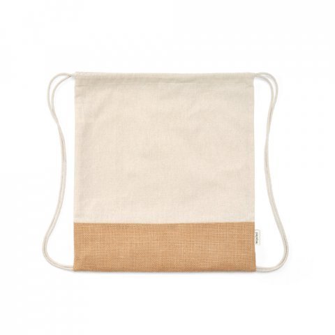 Sacola tipo mochila em 70% algodão reciclado e 30% poliéster reciclado (180 g/m²) com base em juta (S92344)