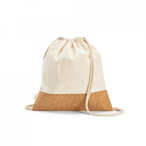 Sacola tipo mochila em 70% algodão reciclado e 30% poliéster reciclado (180g/m²) com base em cortiça (S92340)
