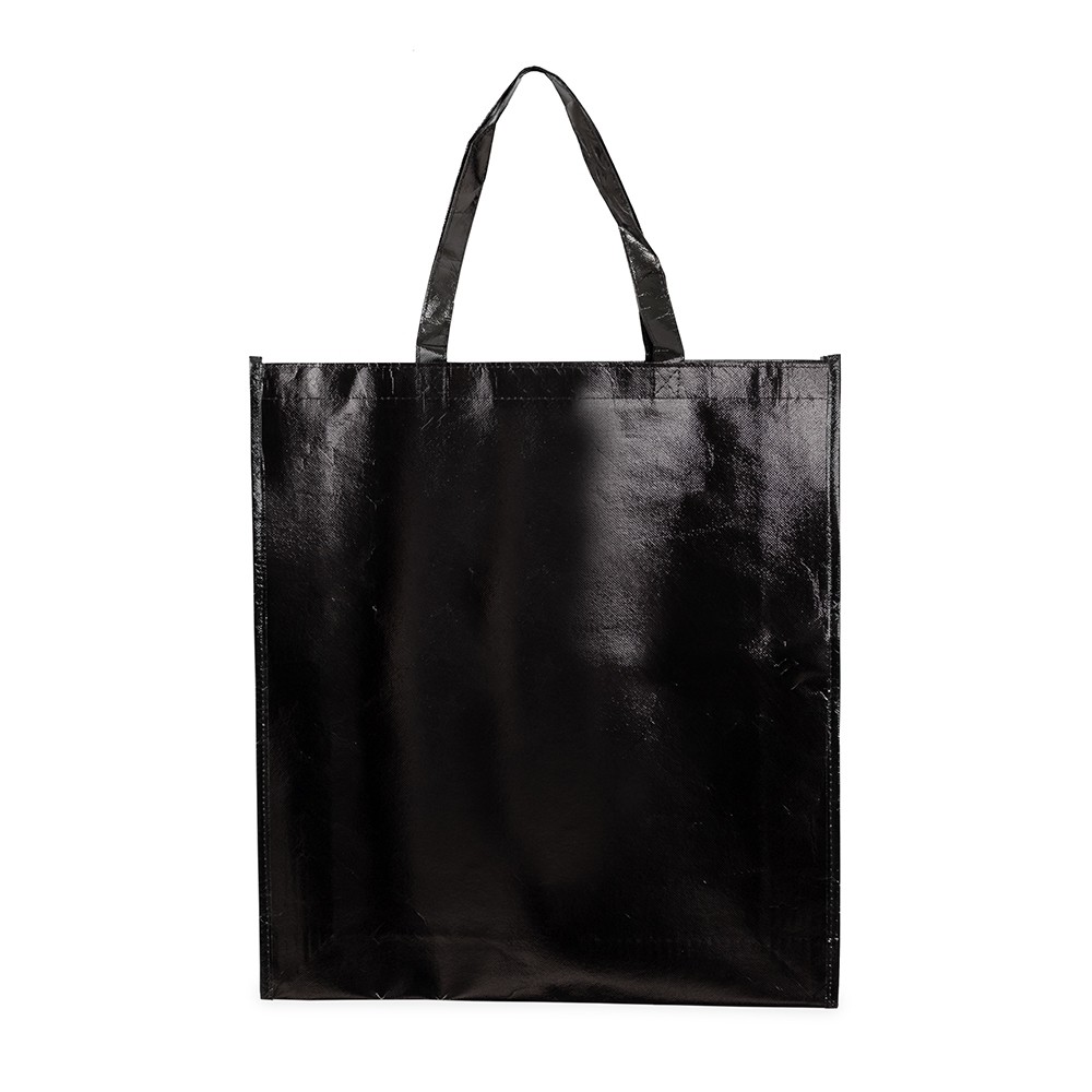 Sacola confeccionada em TNT com revestimento externo laminado e duas alças costuradas.